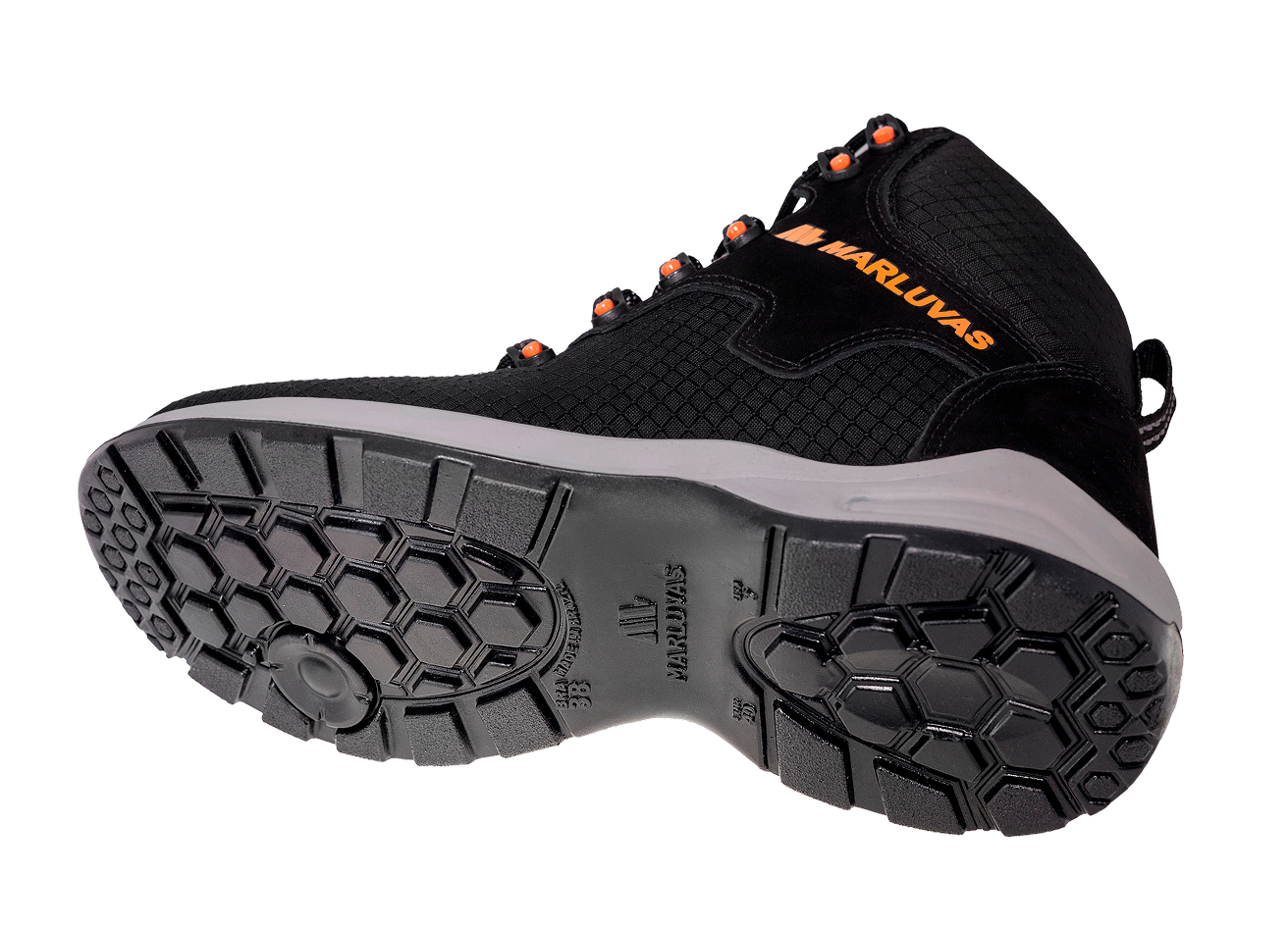 Calçado livre de metais, com visual esportivo e acabamento na cor preto com detalhes laranja, é uma bota versátil e funcional, ideal para ambientes administrativos, corporativos, operacionais com menor risco e também para atividades elétricas de baixa voltagem, conforme aprovação NBR ISO 16603:2017.