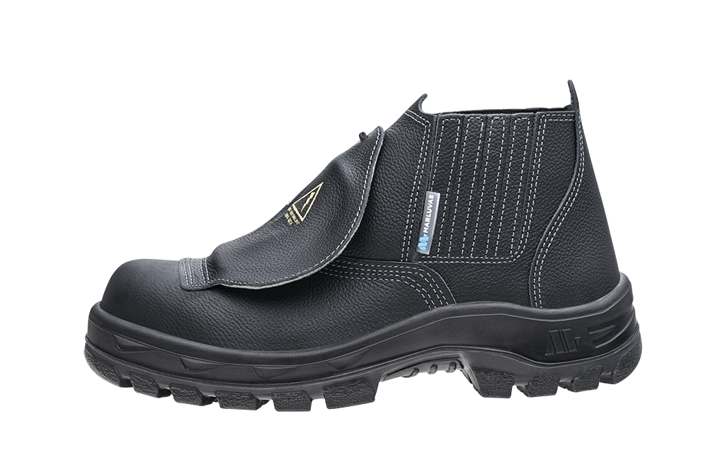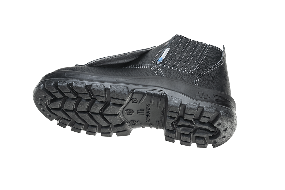 Botina de segurança na cor preta, com biqueira de composite, confeccionada em couro hidrofugado. Este calçado possui fechamento em elástico nas laterais, forração interna, palmilha hifi~enica com sistema antibacteriano, protetor de metatarso externo e solado bidensidade. Além disso, esta botina possui proteção contra choques elétricos, ideal aos profissionais que tatuam em áreas de instalações elétricas de baixa tensão (até 500V).