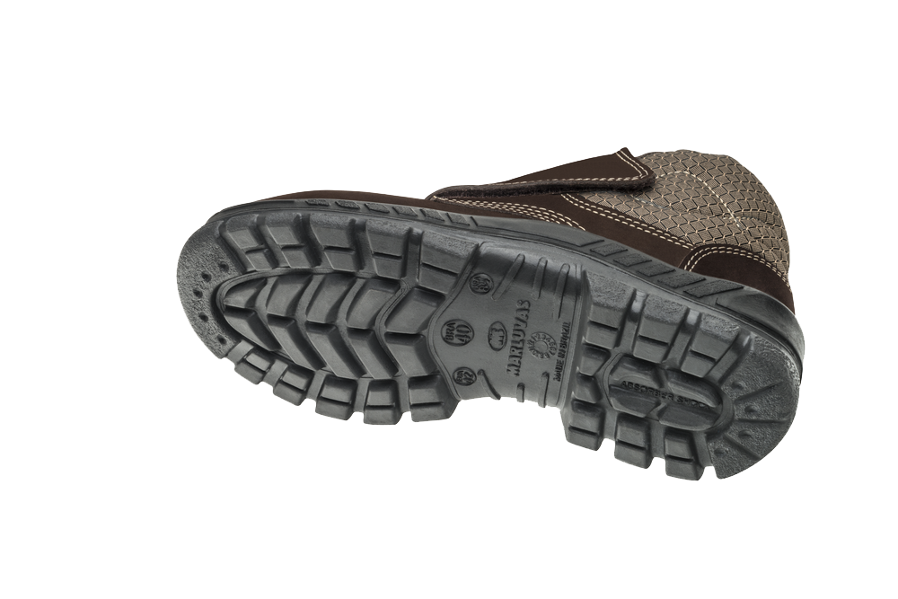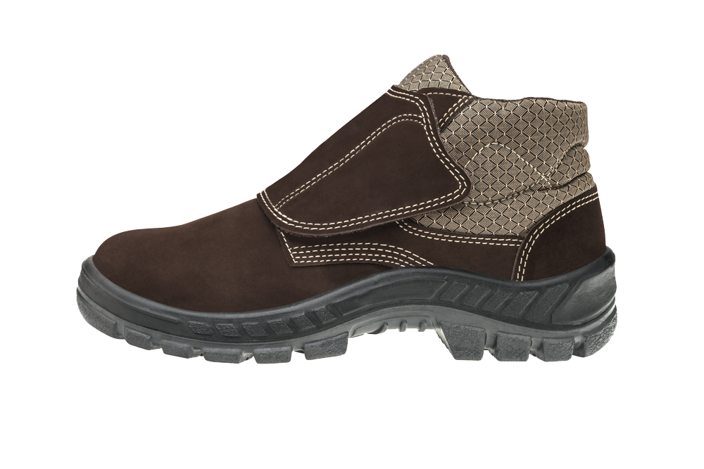 Bota de segurança confeccionada em couro nubuck na cor café, ideal para áreas de construção civil, serviços gerais e áreas de produção. Sem componentes metálicos, este calçado tem estrutura fibrosa e microporosa, que ajuda a manter a temperatura dos pés, colarinho e lingueta semifole soft acolchoados na cor bege e fechamento em velcro na parte da frente. Apresenta biqueira de Plástico, solado em PU bidensidade, injetado diretamente no cabedal, palmilha higiênica com proteção antibacteriana.